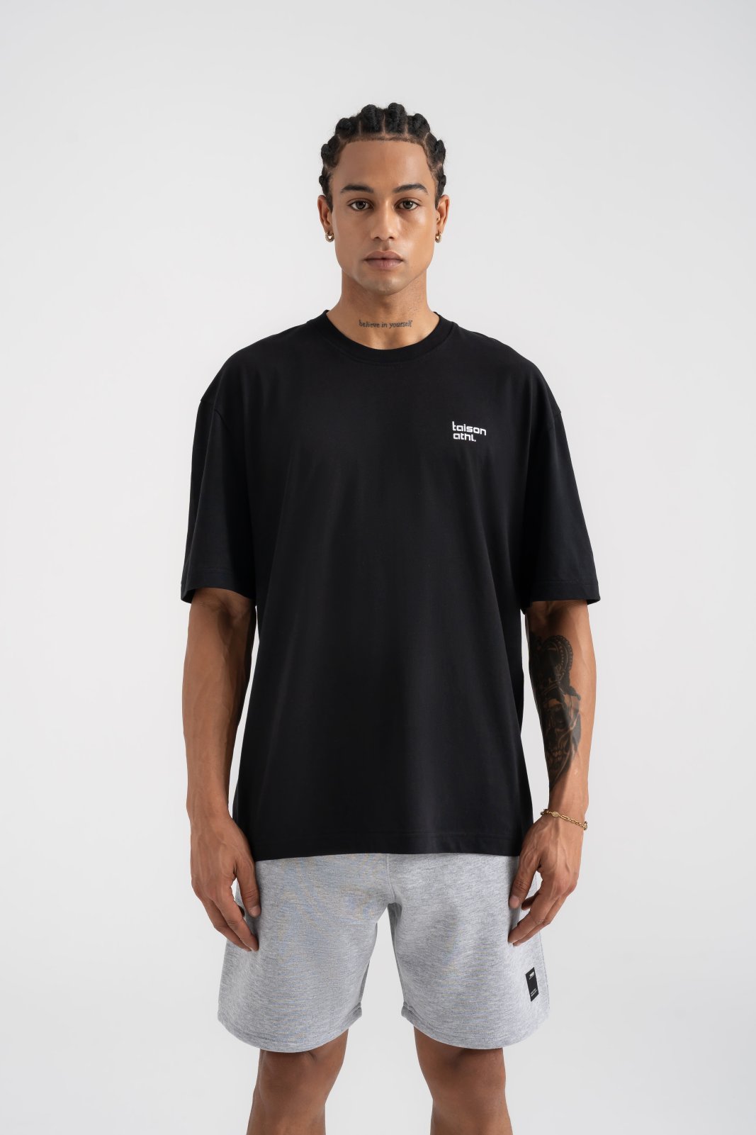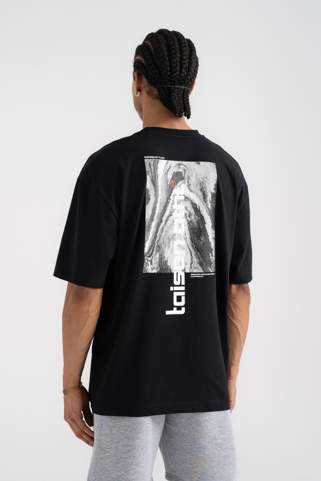 Oversize kalıbı ve sırt kısmındaki modern grafik formu ile öne çıkar. Kumaşı %100 pamuk olup, günlük kullanım için iyi bir tercihtir.